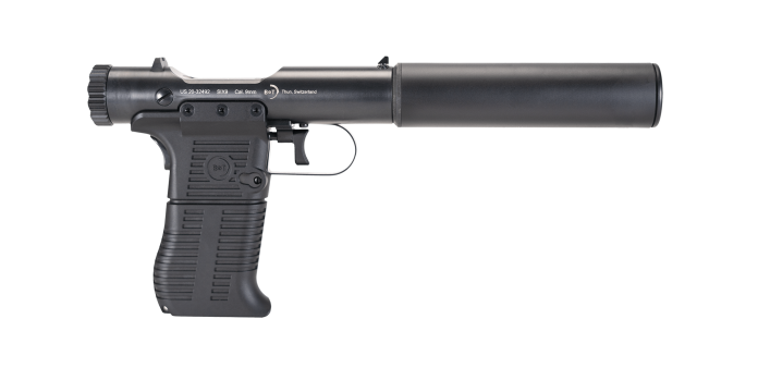The Station Six-9 was developed because Swiss veterans needed a quiet gun, to move sick game or cattle along the roads. The developers wanted to make a pistol that sounded quiet, yet had enough energy to dispatch large animals, quickly! You’ll find that the sound is under 125 decibels (incredibly quiet for a top handgun). It’s simple to disassemble the pistol into three different parts, making transportation easier.